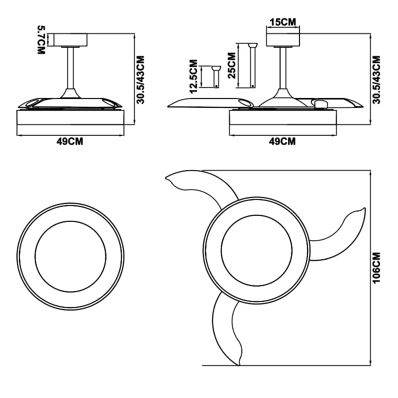 Wymiary: Ø106cm, podsufitka - 15cm