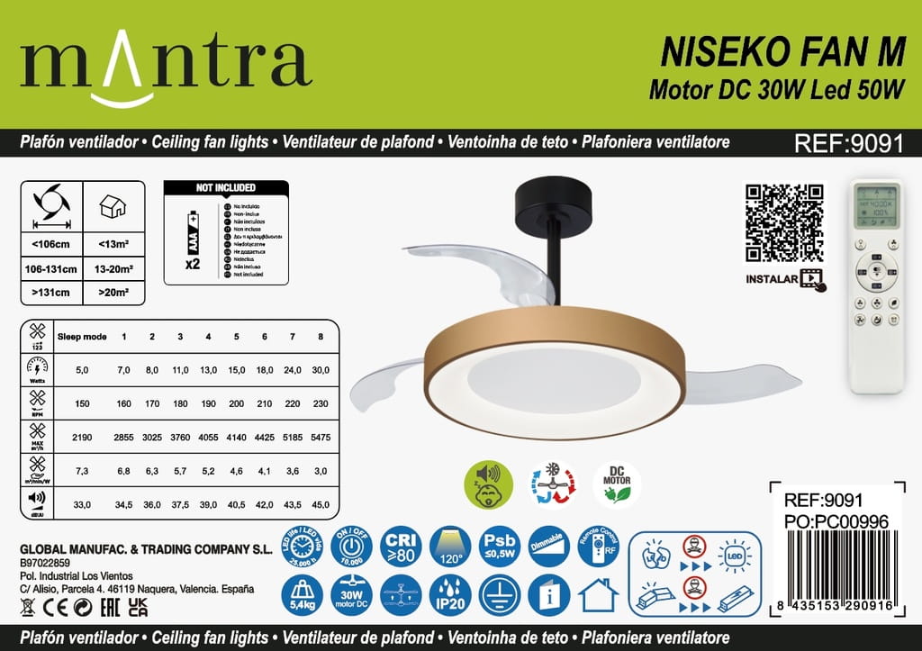 Wentylator sufitowy Mantra Niseko Fan M 9091